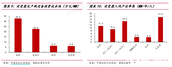 2020年,逆變器單位容量生產設備投資成本為6.0萬元/MW,在光伏產業鏈中處于低位。而逆變器生產線直接員工的人均產出約為17.5MW/年/人,高于產業鏈其他環節。成為產業鏈里資產投入低人均產出高的主要環節。