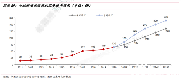 2025 年,全球光伏逆變器市場規模有望超過800億元,而在新興的儲能領域, 僅國內風光配儲需求就有望產生超過200億元的儲能逆變器市場空間。