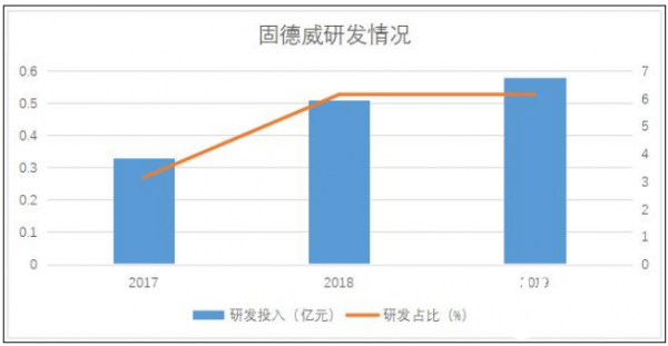 研發方面,截至2019年12月31日,固德威擁有研發人員167人,占員工總數的17.20%,其中本科以上學歷人員占全部研發人員的80.24%。累計擁有已授權專利75項,其中發明專利28項、實用新型專利41項、外觀設計專利6項,軟件著作權6項。研發投入與研發占比均在報告期內呈現穩步增長的趨勢。