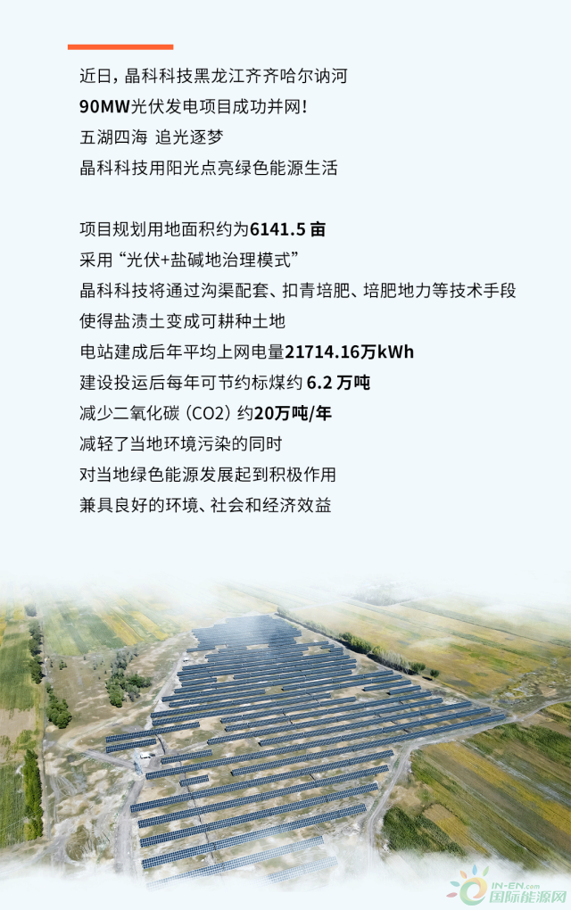 開門紅!晶科科技訥河90MW光伏發電項目發來并網“賀電”